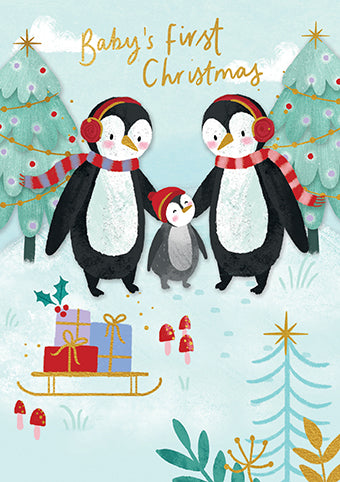 Paper Rose 'Baby's First Christmas Penguin Family' Christmas Card