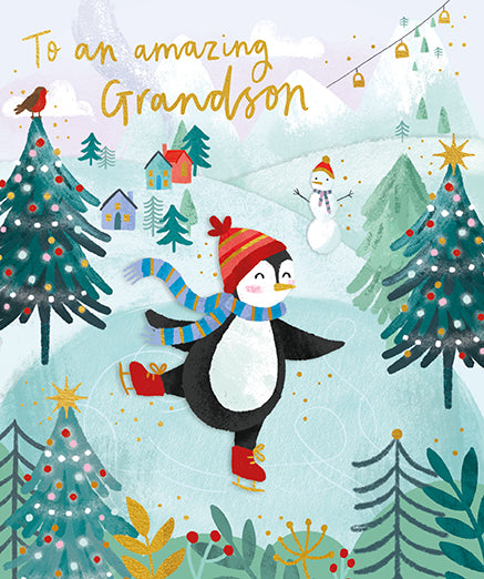Original price £2.29Original price £2.29 - Original price £2.29Original price £2.29Current price £1.37£1.37 - £1.37Current price £1.37| /Delight your grandson this holiday with a playful Christmas card from Paper Rose featuring a festive penguin dressed for winter, skating on an ice ...
