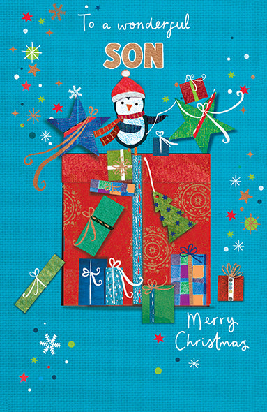 Original price £2.70Original price £2.70 - Original price £2.70Original price £2.70Current price £1.62£1.62 - £1.62Current price £1.62| /Delight your son this Christmas with a playful card from Paper Rose featuring a festive penguin standing proudly on a large gift, surrounded by an ...