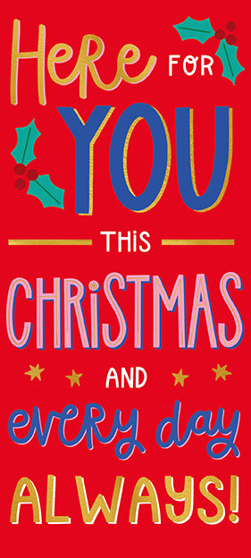 Original price £2.29Original price £2.29 - Original price £2.29Original price £2.29Current price £1.37£1.37 - £1.37Current price £1.37| /Brighten the holidays with this playful Christmas card from Paper Rose, featuring vibrant festive tones and the heartfelt message, "Here for you th...