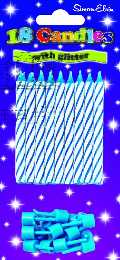 Simon Elvin Pack of 18 Glitter Candles Blue