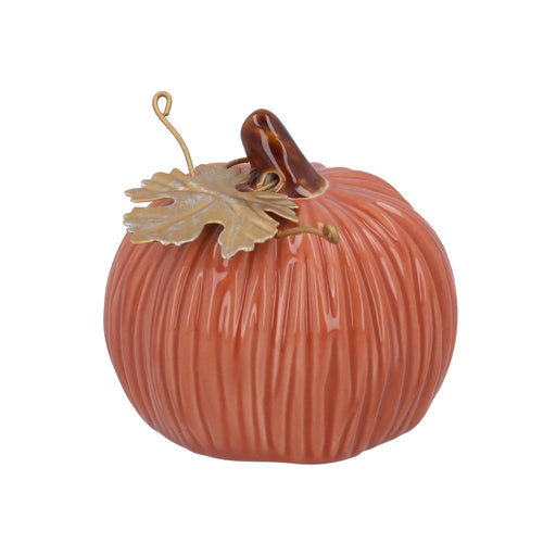 Gisela Graham Orange Pumpkin With Gold Leaf Stoneware Ornament 8cm