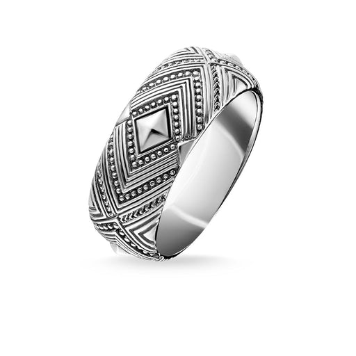 This Thomas Sabo silver ring features a distinctive African-inspired blackened design, expertly crafted to highlight intricate patterns with a bold...