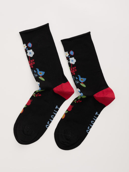 Seasalt Women's Bamboo Arty Socks In Woodland Bird Clover Leaf