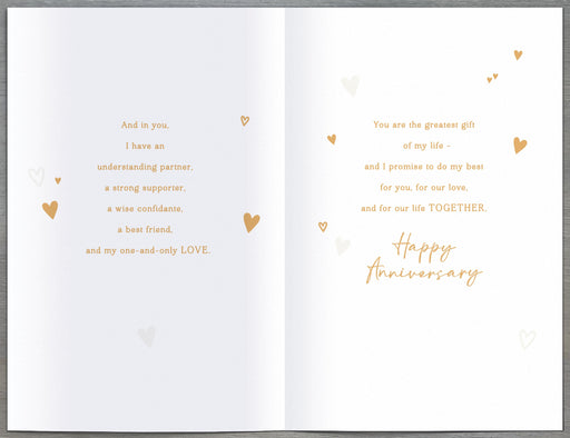 Original price £3.30 - Original price £3.30Original price£3.30£3.30 - £3.30Current price £3.30| /Celebrate your anniversary with this refined UK Greetings card in elegant gold and ivory tones. Featuring two intertwined hearts and a loving messa...