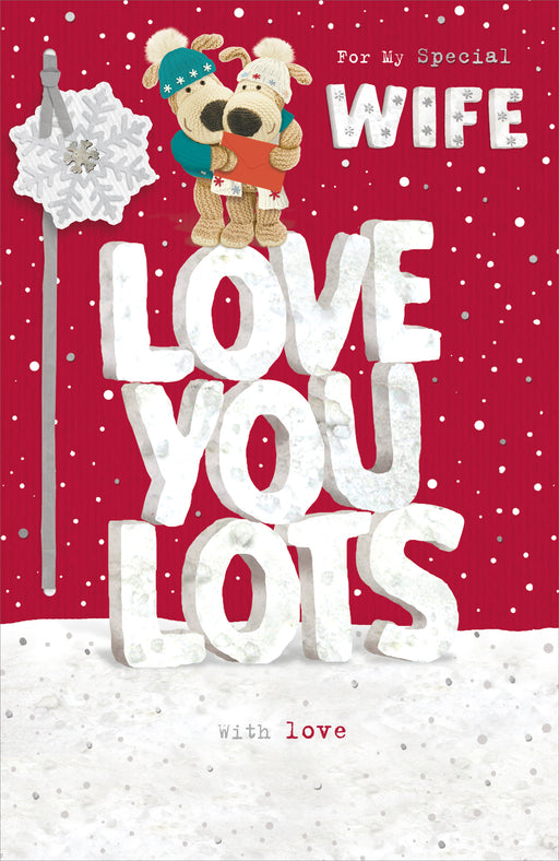 Original price £5.15Original price £5.15 - Original price £5.15Original price £5.15Current price £3.09£3.09 - £3.09Current price £3.09| /This playful Christmas card from UK Greetings features Boofle the dog with a partner standing on snow-formed letters spelling out "Love you Lots" i...