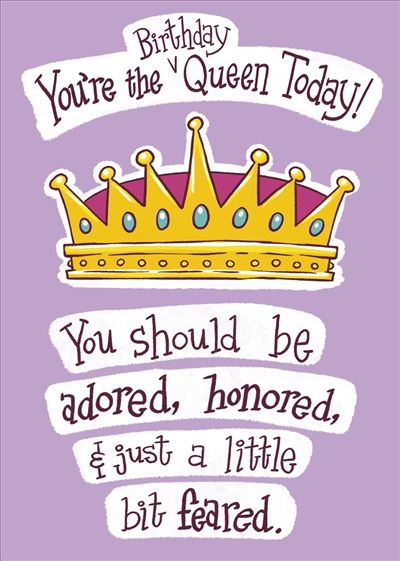 UKG 'You're The Queen Today! You Should Be Adored, Honored & A Little Bit Feared' Birthday Card
