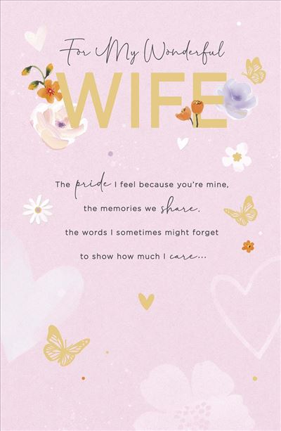 Original price £2.49 - Original price £2.49Original price£2.49£2.49 - £2.49Current price £2.49| /Celebrate your wife’s birthday with this refined UKG card featuring flowers and butterflies on pink tones and a heartfelt message, its sophisticat...