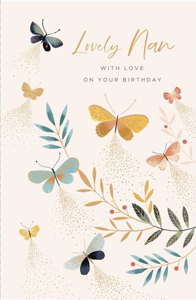 Original price £2.99 - Original price £2.99Original price£2.99£2.99 - £2.99Current price £2.99| /Delight your Nan on her birthday with this charming UK Greetings card adorned with graceful butterflies and blooming flowers. Playful yet elegant, ...