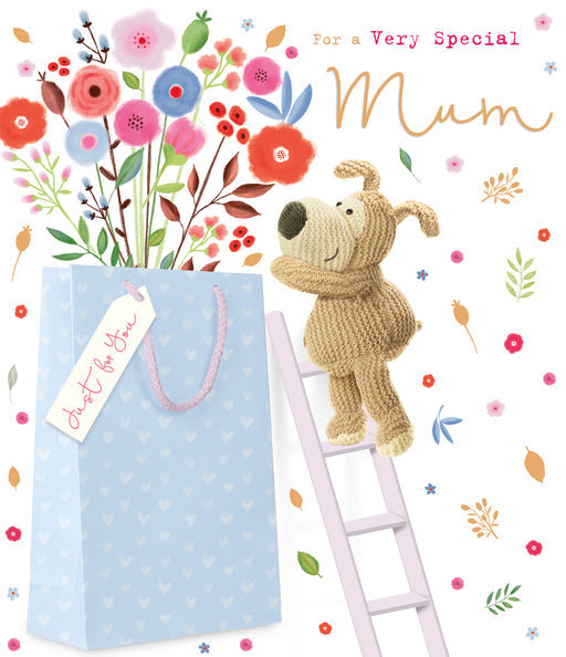 Original price £2.99 - Original price £2.99Original price£2.99£2.99 - £2.99Current price £2.99| /Celebrate your mum’s birthday with this charming UKG card featuring Boofle the dog on a ladder, carefully checking flowers in a gift bag. Its sophi...