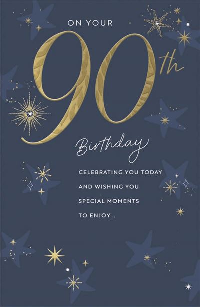 Original price £2.49 - Original price £2.49Original price£2.49£2.49 - £2.49Current price £2.49| /This sophisticated 80th birthday card from UK Greetings features a charming gold and blue look. With the playful message, "On your 90th Birthday" i...