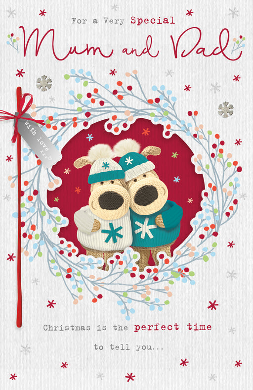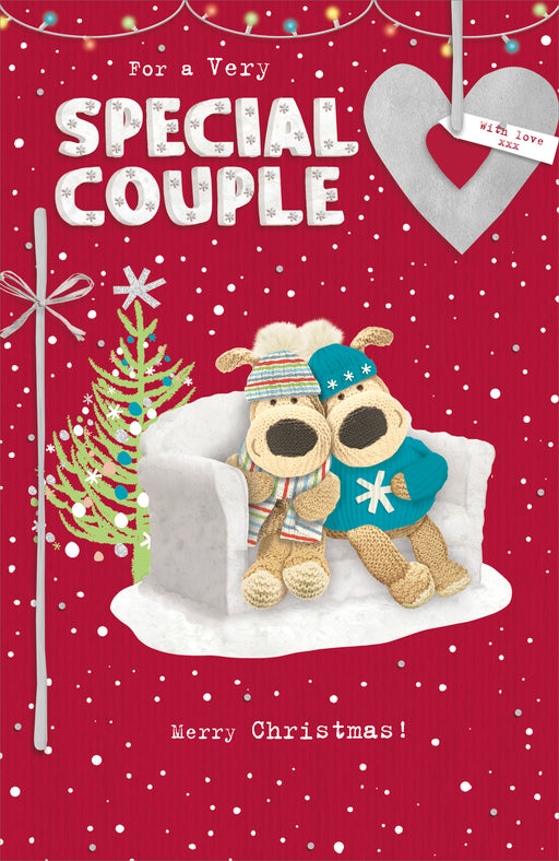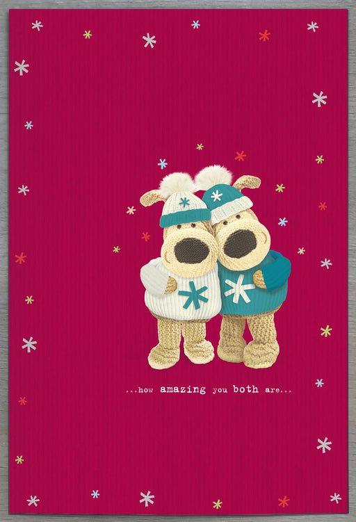 Original price £6.25Original price £6.25 - Original price £6.25Original price £6.25Current price £3.75£3.75 - £3.75Current price £3.75| /This sophisticated Christmas card from UK Greetings features Boofle the dog and his partner dressed in festive clothes, framed by a classic berry w...