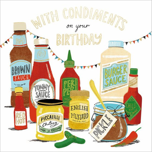 Original price £2.99 - Original price £2.99Original price£2.99£2.99 - £2.99Current price £2.99| /Celebrate in style with our saucy birthday card for him. Featuring a unique design of a selection of condiments with gold foil details and th...