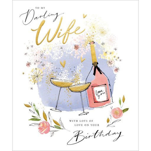 Original price £3.65 - Original price £3.65Original price£3.65£3.65 - £3.65Current price £3.65| /This elegant Woodmansterne birthday card for a darling wife features a whimsical image of a champagne glass and bottle in soft pastel and gold tone...