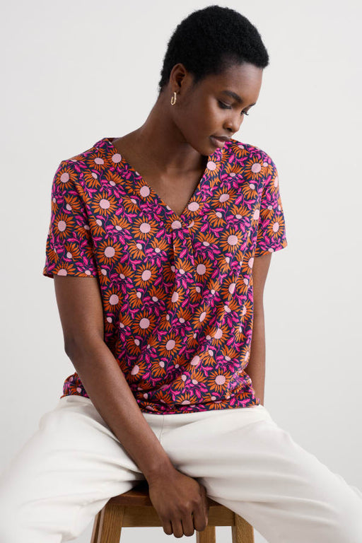 Seasalt Women's Barnoon Jersey Printed Short-Sleeve Top In Bold Sunflower Maritime