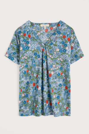 Seasalt Women's Barnoon Jersey Printed Short-Sleeve Top In Still Life Sea Holly