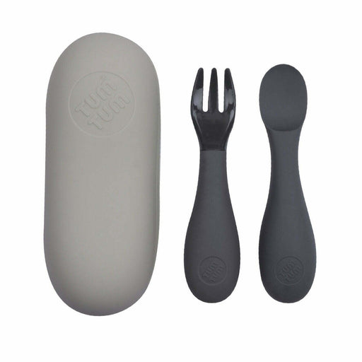 Hippychick TUM TUM Silicone Baby Cutlery Set With Case Grey