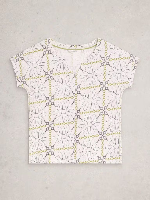White Stuff Women's Nelly Notch SS Neck Tee In White Print