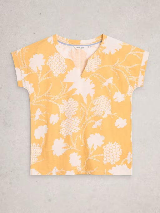 White Stuff Women's Nelly Notch SS Neck Tee In Yellow Print