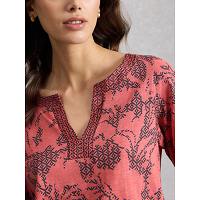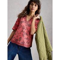 White Stuff Women's Weaver Notch Neck SS Tee In Pink Print
