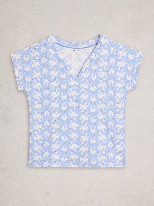 White Stuff Women's Nelly Notch SS Neck Tee In Blue Print