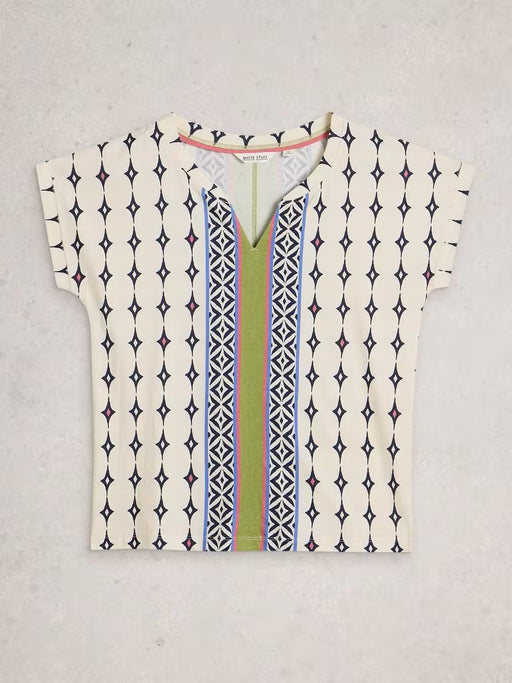 White Stuff Women's Nelly Notch SS Neck Tee In White Multi