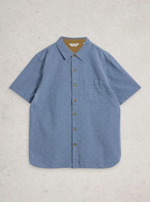 White Stuff Men's Tile Stitch SS Shirt In Mid Blue
