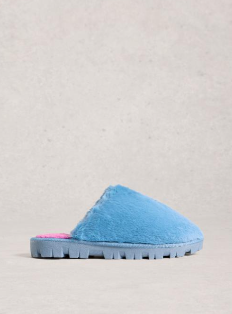 White Stuff Women's Faux Fur Mule Slippers In Bright Blue