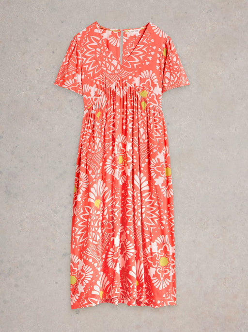 White Stuff Women's Lucy Midi Short Sleeve Dress In Coral Print