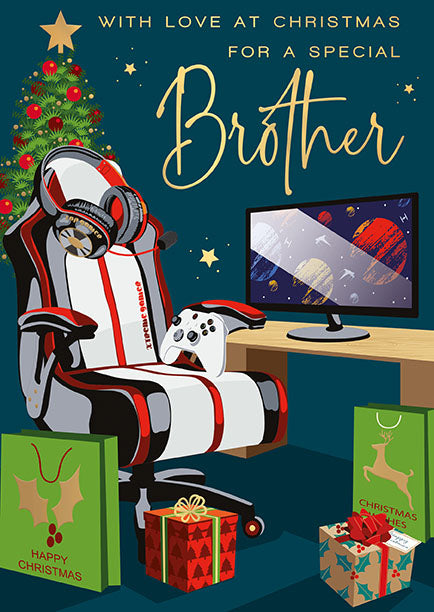 Original price £2.50Original price £2.50 - Original price £2.50Original price £2.50Current price £1.50£1.50 - £1.50Current price £1.50| /This Christmas card from Words n Wishes depicts a vibrant games room featuring a chair, computer screen, and numer...