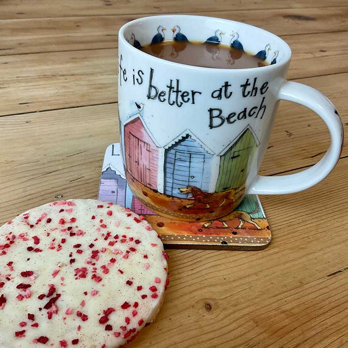 This Alex Clark mug will make a lovely addition to your kitchen. Perfect for coffee, tea and other hot drinks. Features illustrations around the inside rim and down the handle.