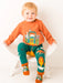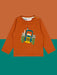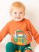 This tan long-sleeved top features a fun green Tractor with chunky wheels appliqued on the front.