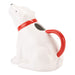 The body of the jug is formed in the shape of a polar bear with pale blue claws and a red painted bow tied around its neck. This stoneware piece features a flat base and a red handle to match the bow. On its back is space for you to fill the jug with your choice of sauce or gravy and pour it out from the hole in its mouth, just as though it’s blowing magic onto your food. Ideal for special occasions, everyday use or as a statement piece in your kitchen, this delicate jug oozes charm - fit for any meal time. It blends practicality with whimsical flair and vintage charm.