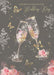 This playful wedding card from Cherry Orchard features golden glasses clinking, surrounded by delicate flowers and butterflies. Its vibrant design offers a joyful and charming way to send heartfelt congratulations on the special day.