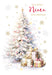 This sophisticated Christmas card from Cherry Orchard features a fully decorated Christmas tree adorned in soft pastel and gold tones, surrounded by beautifully wrapped presents. The elegant festive colours and delicate design create a graceful holiday greeting, perfect for sending warm wishes to your niece.
