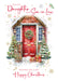This sophisticated Christmas card from Cherry Orchard features a snowy cottage with a red front door, adorned with a holly wreath. Presents and a traditional sleigh complete the festive scene, making it a perfect elegant greeting for your daughter and son-in-law.