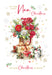 This sophisticated Christmas card from Cherry Orchard features a vibrant pile of presents in festive red, green, and gold hues, elegantly finished with a delicate floral bouquet. The rich colours and refined design create a warm and graceful holiday greeting, perfect for sending heartfelt wishes to your nan.