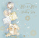 This playful wedding card from Cherry Orchard features elegant golden and blue tones, adorned with golden balloons and presents. Its joyful design offers a delightful way to congratulate the new Mr & Mrs on their special day.