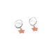 These elegant Rose Gold flower charms on silver hoop earrings are crafted by Clementine. The delicate design adds a touch of style to any outfit. Made with quality materials, these earrings are both stylish and durable, making them a perfect addition to any jewellery collection.