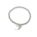 This silver plated beaded bracelet from Clementine Jewellery makes a stunning accessory. Featuring an elastic band and sterling silver star and moon charms, it brings a touch of whimsical charm to any wardrobe. Perfect for everyday wear or a special occasion, the bracelet adds a delicate touch of shimmer and shine.