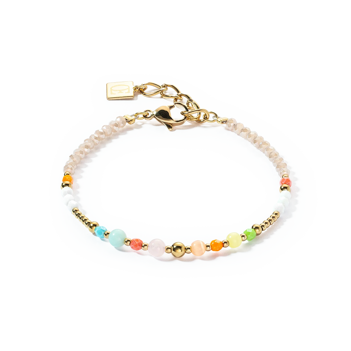This fine, multicoloured COEUR DE LION bracelet has round gemstone beads like amazonite and rose quartz. An elegant addition to spring or summer outfits in pastel shades.
