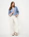Crew Clothing Women's Flip Collar Slub Top in Blue White