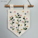 A dainty hanging banner of stylised flowers in a traditional pennant banner style.