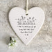 This lightly ribbed white porcelain heart is an excellent gift or decoration for anywhere around the home. It has a string attached so it can be hung from a wall, door or elsewhere, displaying its sweet message to all those who walk past. It is a brilliant way to add a small, unique touch to your home and remind you of what's really important.