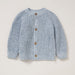 Presenting Rock A Bye Baby Boutique®'s round neck knitted cardigan in serene blue, a timeless wardrobe essential crafted with meticulous attention to detail. Featuring mother-of-pearl buttons and an appliquéd "Hello" motif adorning the back, this piece exemplifies the brand's signature luxury finish and refined aesthetic. Perfect for layering during those precious early months, this cardigan combines traditional elegance with contemporary comfort, making it an ideal addition to any discerning parent's nursery collection.