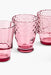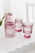 Beautiful fish stacking glass set in rosy pink hue, with four individually shaped 250ml glass tumblers.