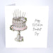 This Birthday card with its stylish Birthday cake image is truly an objects of magic and beauty, lovingly hand painted, glittered and crystal embellished in our studio in Sussex.
