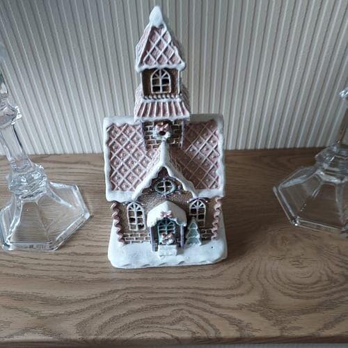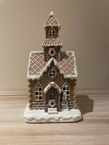 - A lovely pastel iced LED gingerbread house with tower detail