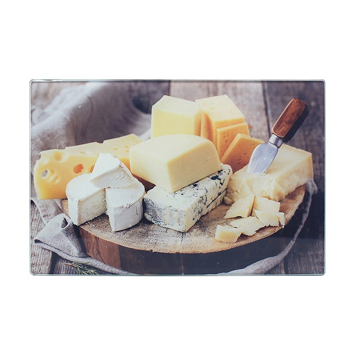 Perfect for dinner preparation and food presentation, this Glass cheese design chopping board with a cheese platter design is an elegant addition to the kitchen, ideal for impressing friends and family.