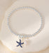Enhance your collection with the Gracee Jewellery beaded Stretch Bracelet, featuring a graceful shimmering blue starfish and lustrous solo pearl. This sophisticated design combines coastal elegance with timeless charm, offering a versatile accessory that adds understated refinement to any ensemble.